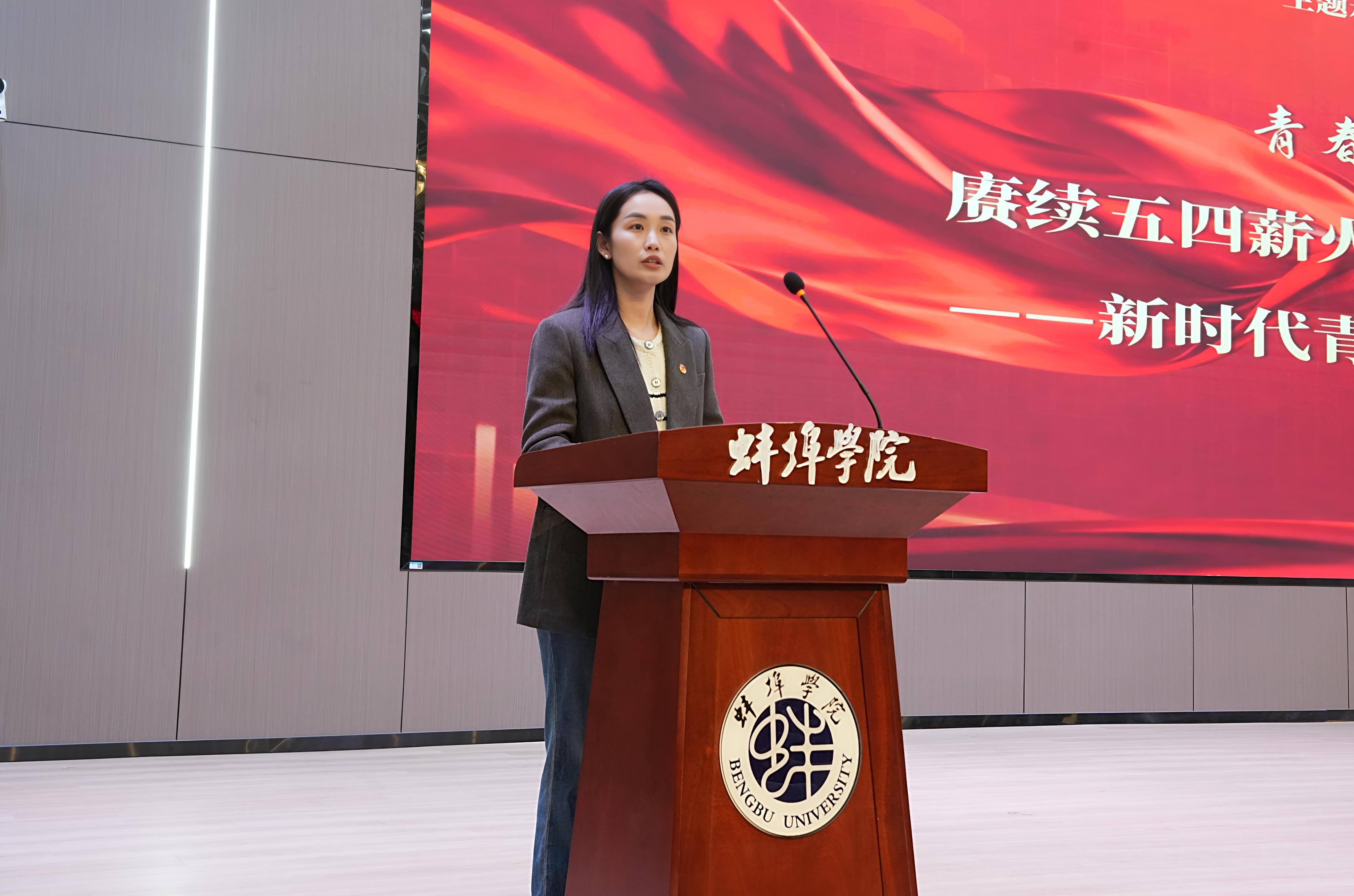 学校党委副书记方贤文讲话,他回顾五四精神的时代价值,结合“十五五”发展新征程,对全体团员青年提出三点希望:一是以青春之信仰筑牢思想之基,坚定听党话、跟党走;二是以青春之本领锤炼过硬之才,珍惜学习时光、提升综合素养;三是以青春之担当书写奋进之篇,将个人成长融入国家发展与学校建设。方贤文表示,学校将全力为青年成长成才搭建平台、提供保障,助力蚌院青年在青春赛道上奋力奔跑。