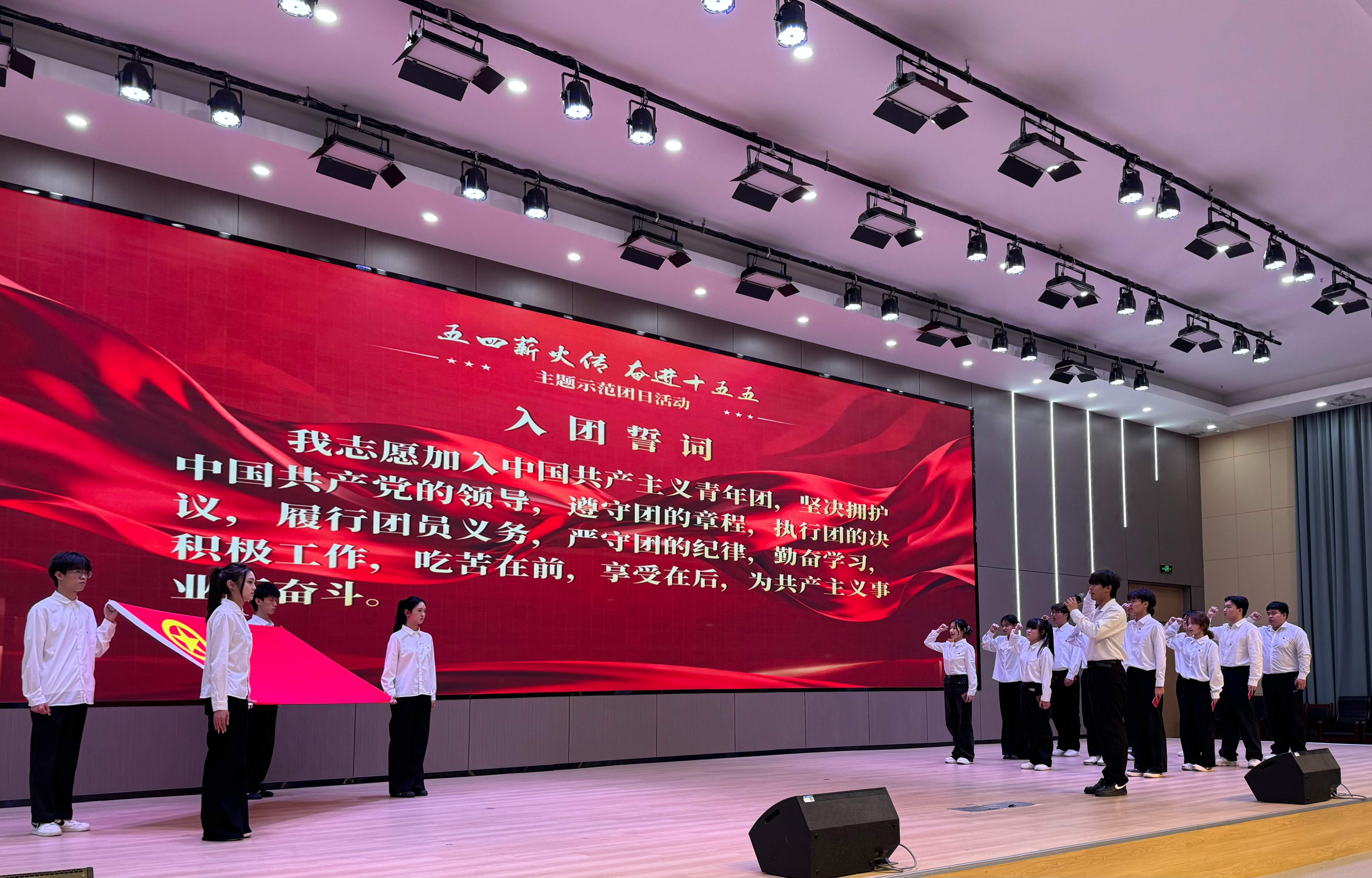 活动在庄严的国歌声中拉开帷幕。新团员示范入团仪式上,老团员代表为新团员代表佩戴团徽、颁发团员证和团章。全体团员面向团旗庄严宣誓,铿锵誓言彰显新时代团员的坚定信念与责任担当。